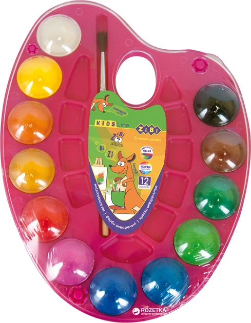 Фарби акварельні ZiBi 12 кольорів натуральний пензлик рожева палітра (ZB.6558-10)