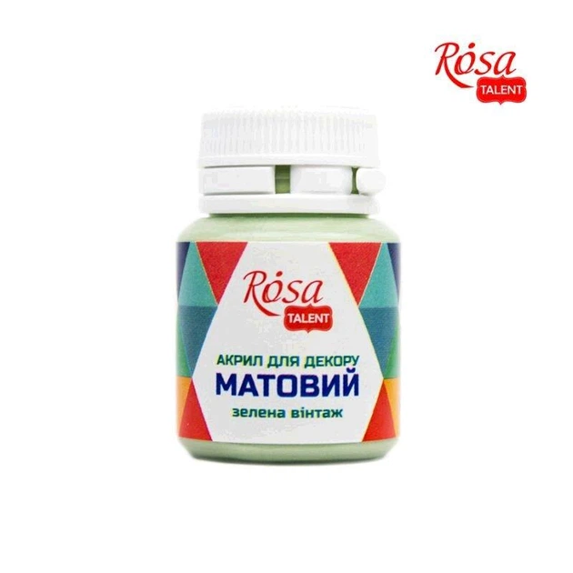 Акрил для декору, Зелена вінтаж, матовий, 20 мл ROSA TALENT, 20047