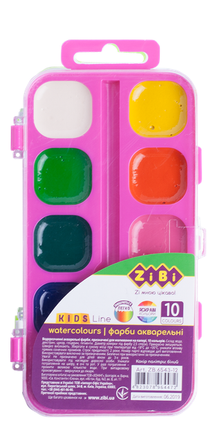 Водорозчинні акварельні фарби, 10 кольорів, білий, KIDS Line