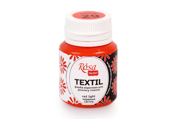 Акрилова фарба для тканини 20 мл, Червона світла 29, ROSA TALENT - для розпису, малювання, декору, хендмейду, текстилю, футб