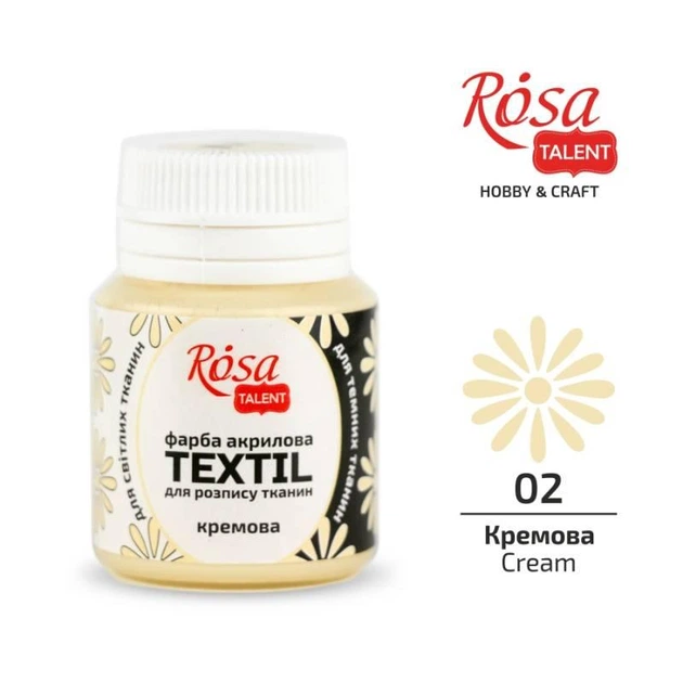 Фарба акрилова для тканини ROSA TALENT (02) Кремова 20мл.