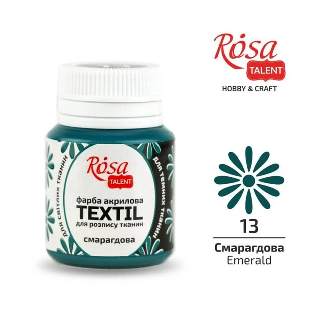 Фарба акрилова для тканини ROSA TALENT (13) Смарагдова 20мл.