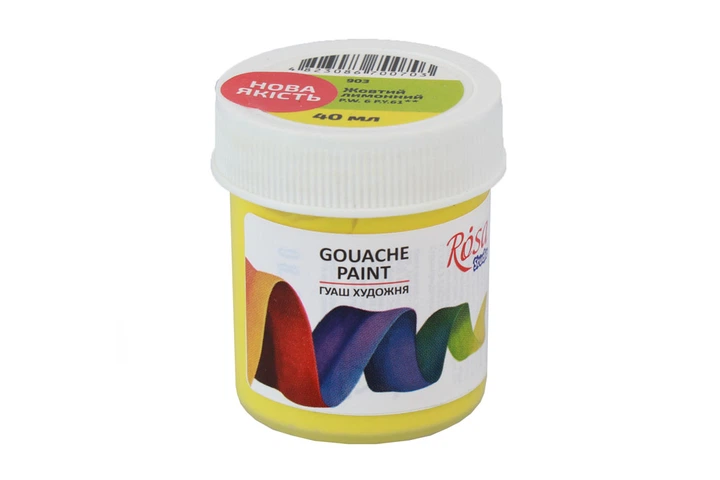 Фарба гуашова, Жовта лимонна 903, 40мл ROSA Studio