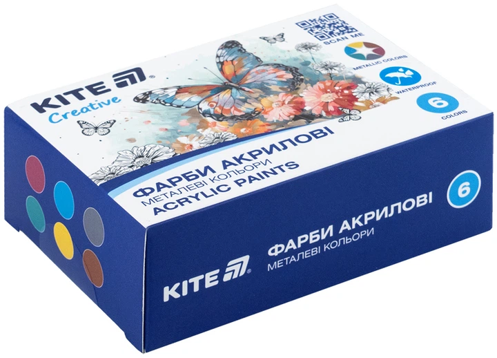 Набір акрилових фарб Kite Creative 6 металевих кольорів у баночках по 20 мл (K-273)