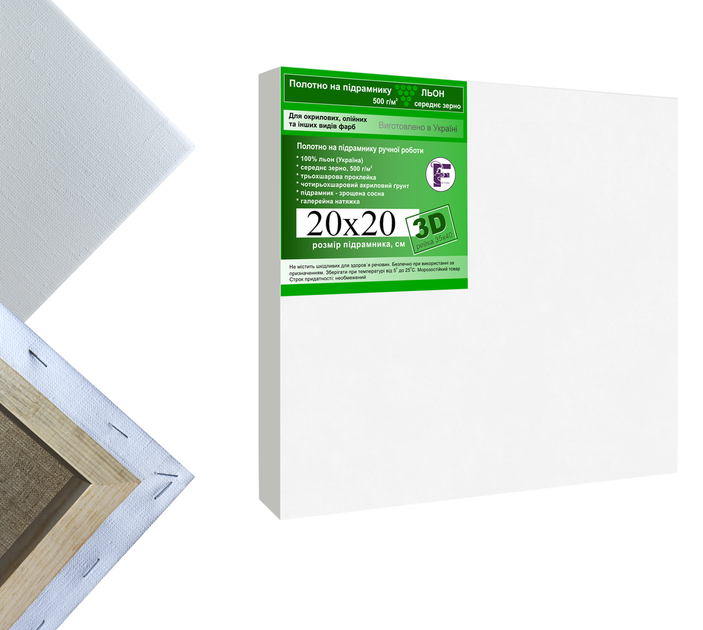 Полотно на підрамнику 3D 20х20см Україна льон 500гр/кв. м. середнє зерно акриловий грунт,галерейна натяжка,білий