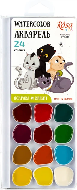 Набір акварельних фарб Rosa Kids Cats 24 кольорів без пензлика (4823098541486)