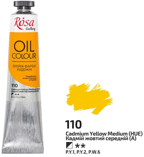 Фарба олійна Rosa Gallery Кадмій жовтий середній 110, 45 мл (4823098510277)