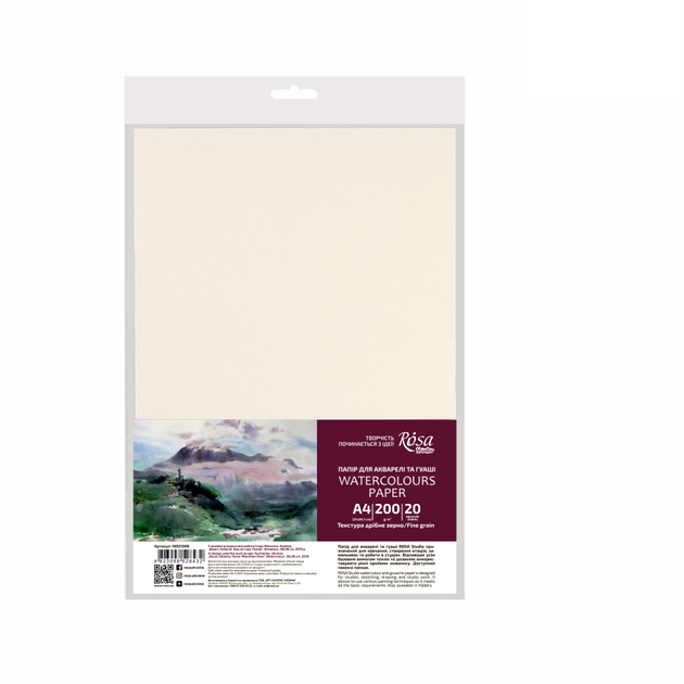 Папір для акварелі Rosa Studio 200 г/м2, дрібне зерно А4, 20 аркушів (16921006)