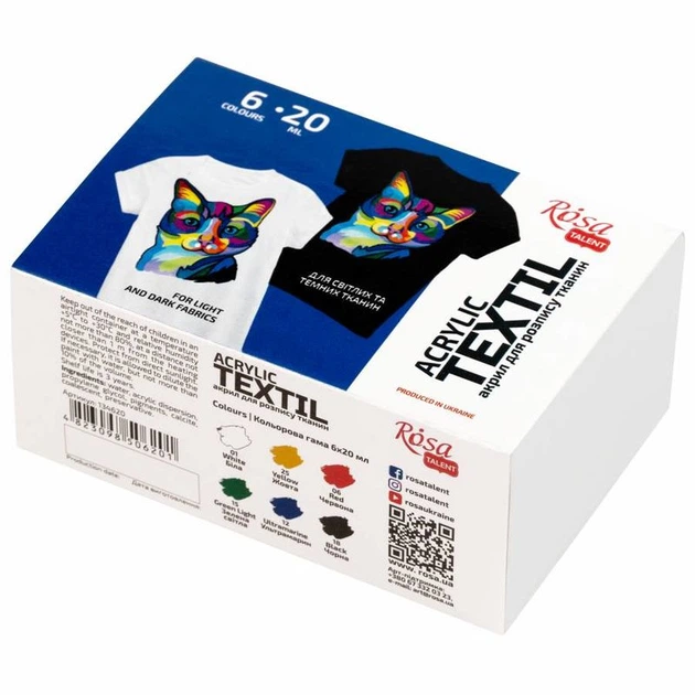 Фарба по тканині Rosa Talent у наборі 6 кольорів 20 мл. (134620)
