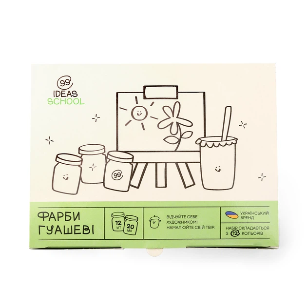 Гуаш, 12 кольорів, 20 мл, Захоплення, 99IDEAS