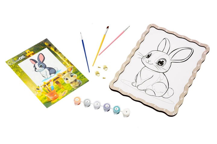 Розвиваюча іграшка розмальовка із дерева PuzzleOK Зайчик з фарбами