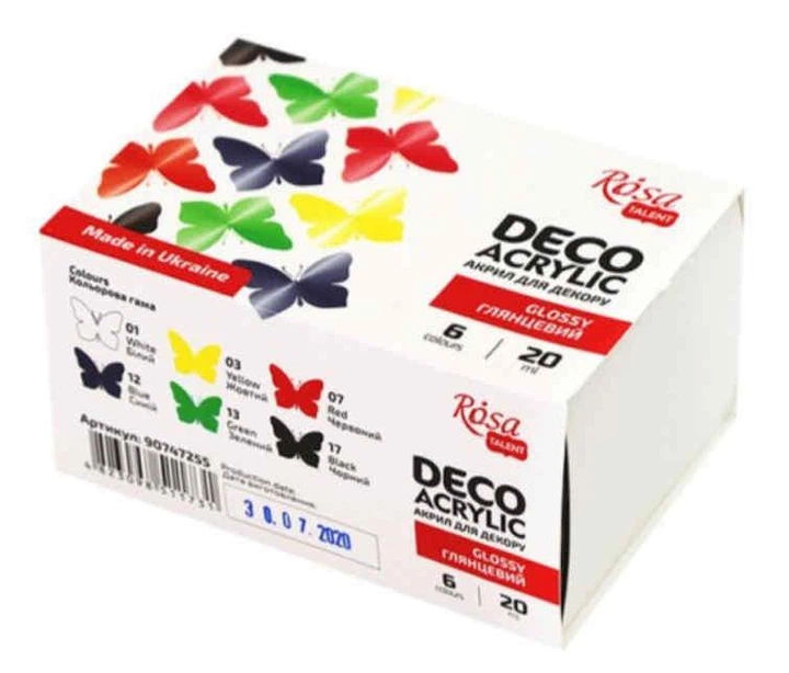 Набір акрилових фарб Rosa Talent для декору Глянцевий 6 кольорів по 20 мл