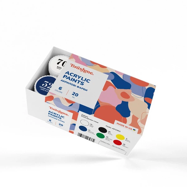Фарба акрилова Brushme глянцева вологостійка для малювання та рукоділля 20 мл 6 кольорів (AP1001)