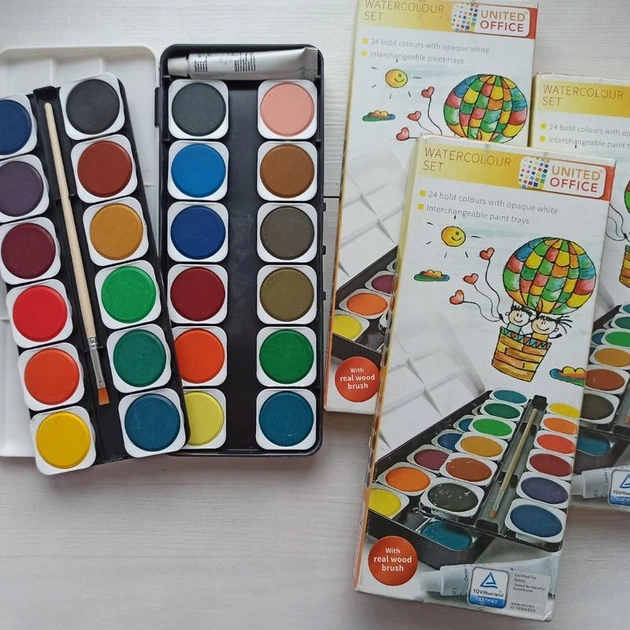 Набір акварельних фарб, 24 кольори, 1 тюбик.