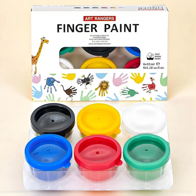Гуаш пальчикова для дітей, набір 6 кольорів по 35 мл у баночках