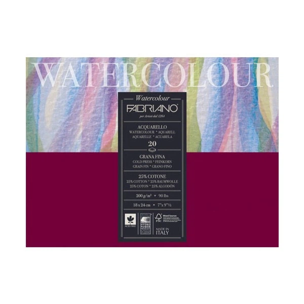 Альбом для акварелі Fabriano Watercolour 200 г/м2, 25 бавовна, склеювання А5, 20 аркушів (72611824)