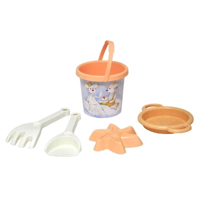 Пісочний набір Середній S0005 Відро, пасочки, лопатка, граблі (Червоний)