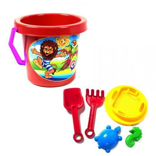 Пісочний набір Середній S0005 Відро, пасочки, лопатка, граблі (Червоний)