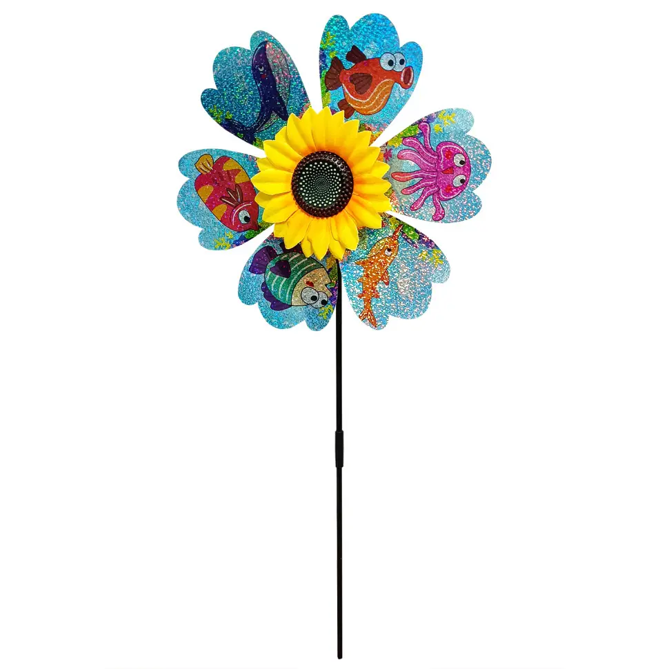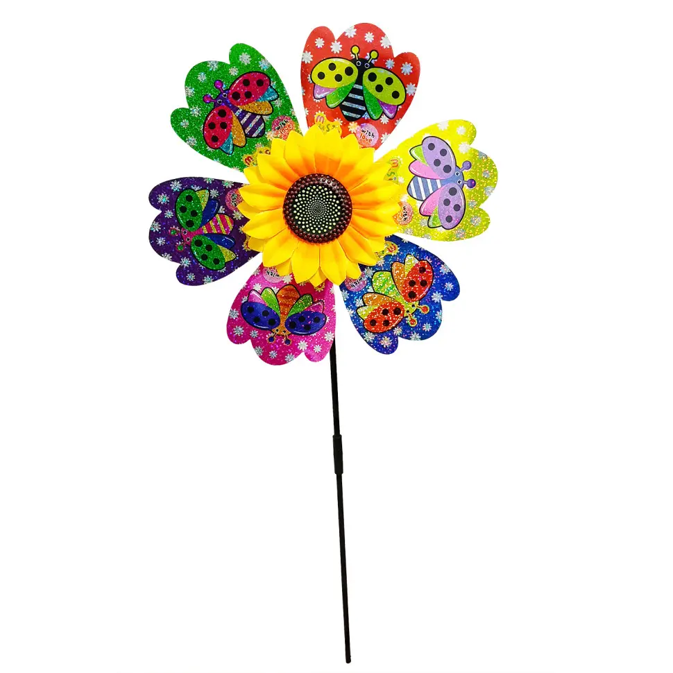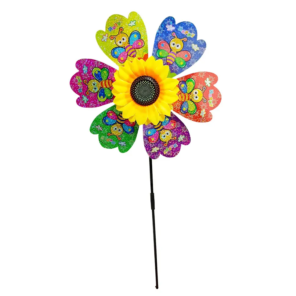 Вітрячок вертушка, квітка, діаметр 28 см, паличка 48 см, фольга, 28x28x3 см (В асортименті)