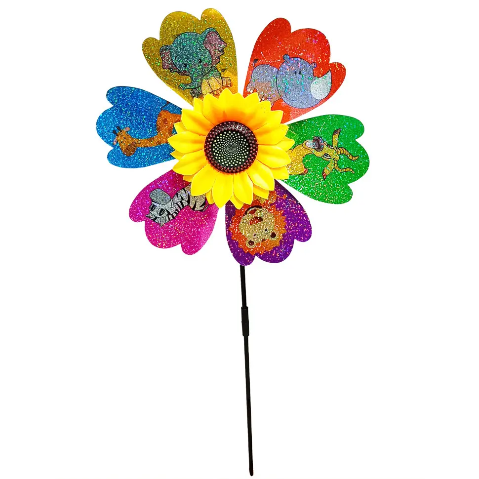 Дитячий вітрячок "Тварини" МR 1225-3 квітка діаметром 28 см, паличка 48 см