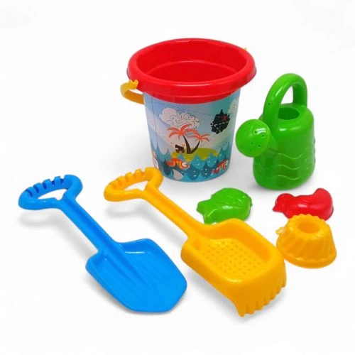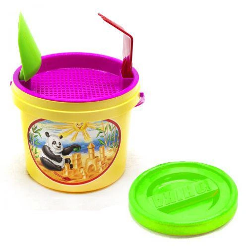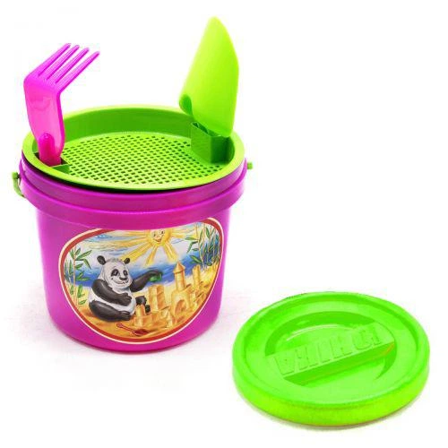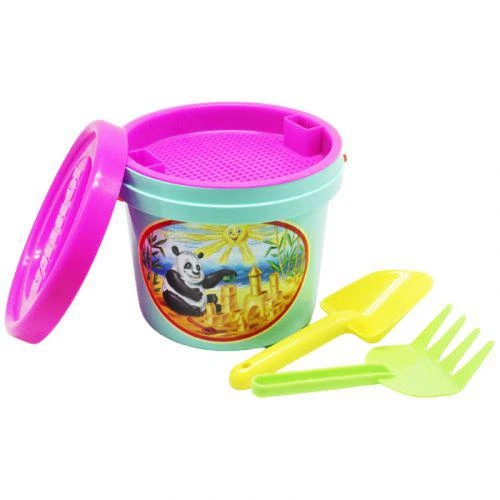 Пісочний набір - відерце, лійка, лопатка, граблі-сито, 3 формочки