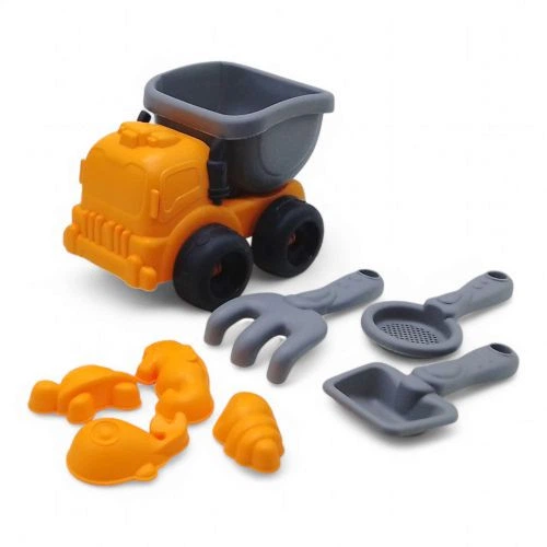 Песочный набор - Машинка самосвал, лопатка, грабли, сито, 4 формочки