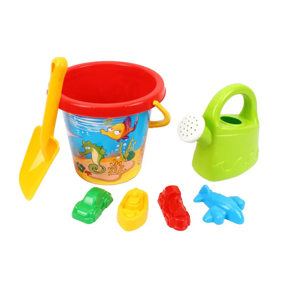 Пісочний набір 733-341R комплект із 7 елементів з відерцем, лопаткою, ситечком та формочками