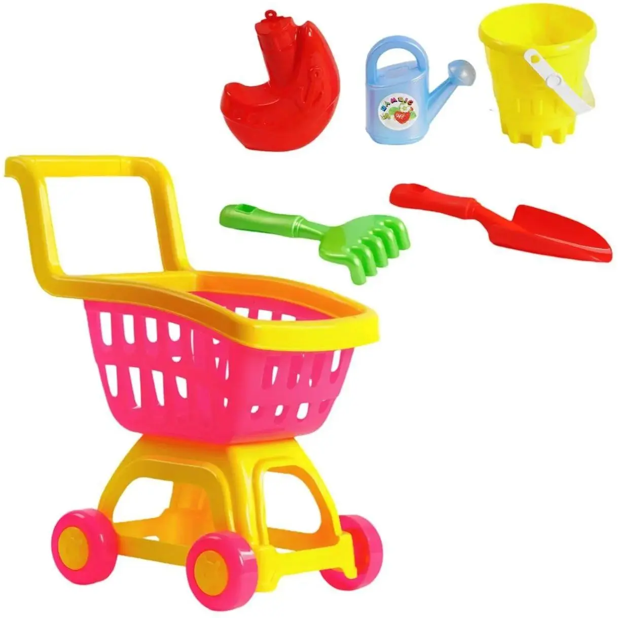 Дитячий пісочний набір Bamsic 213/2 візочок із кошиком та комплект для гри в пісочниці