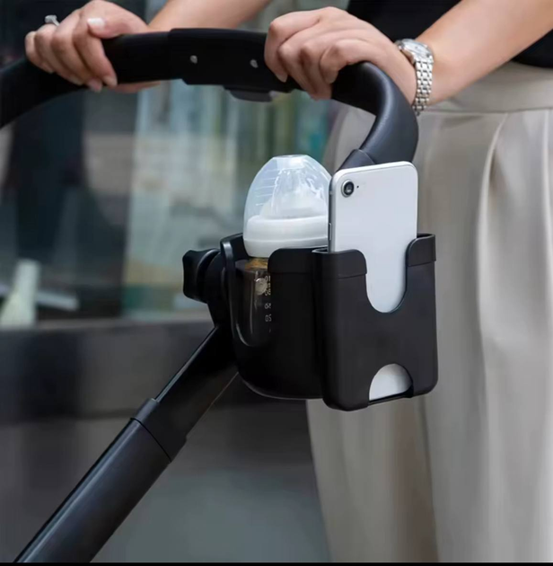 Підстаканник для дитячого візка з тримачем для телефону чорний