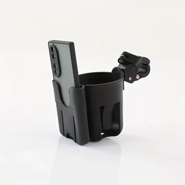 Підсклянник із тримачем телефону для дитячої коляски чорний