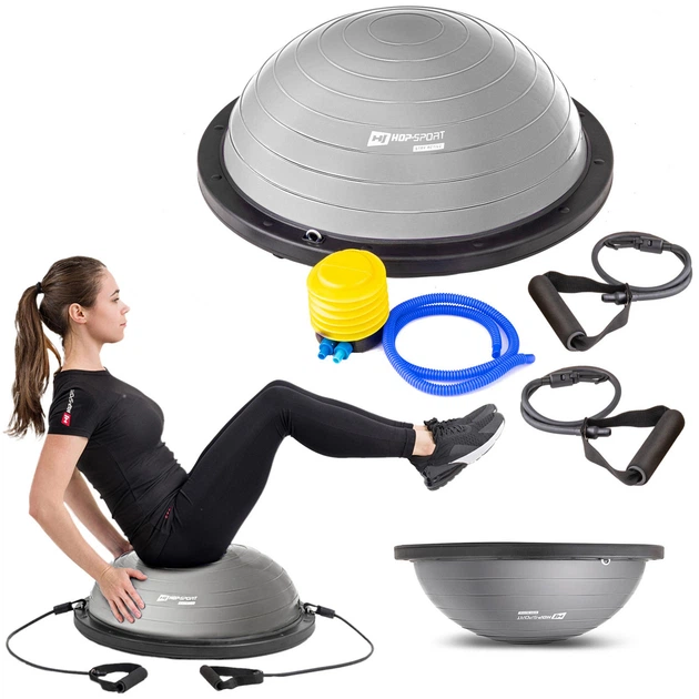 Балансувальна платформа (напівсфера) BOSU Hop-Sport HS-L058 сіра 58 см, для фітнесу, йоги, реабілітації, тренувань