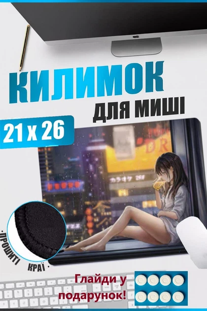 Килимок для мишки ігровий маленький Asadis 260х210х2мм Нічне місто Аніме + Глайди в подарунок