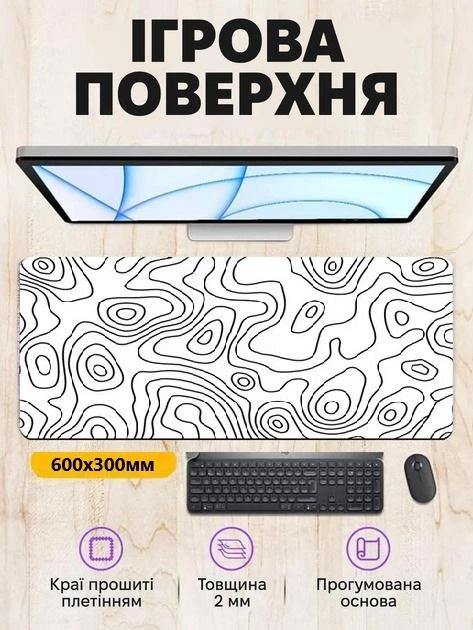 Ігрова повехня, великий килимок для миші та клавіатури 600*300 Білий