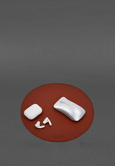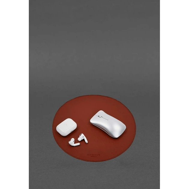 Круглий килимок для мишки з натуральної шкіри світло-коричневий краст (A-028429)