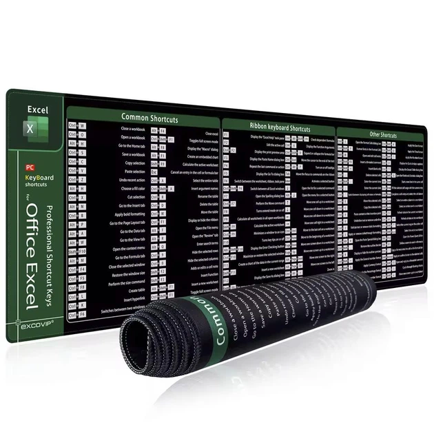 Великий килимок (60 x 30 см) – ігрова поверхня EXCO. Для миші та клавіатури з принтом комбінацій клавіш Excel