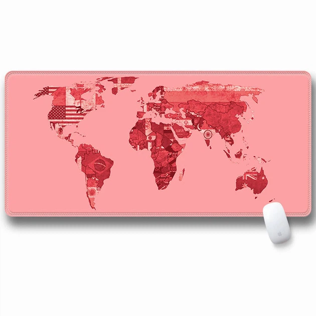 Килимок тканинний Карта світу Voltronic 300*700 мм для геймерів та офісних працівників з боковою прошивкою Pink (TOR-JUG22B)