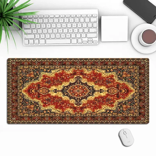 Ігрова поверхня XXL для мишки 80x30 см з антиковзким покриттям Перський килим Черовно-Жовтий