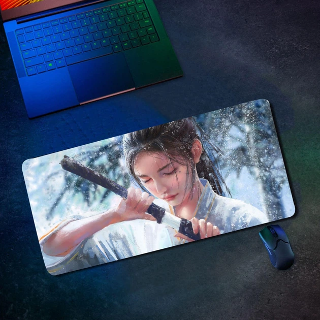 Ігрова поверхня XXL для мишки 80x30 см з антиковзким покриттям Дівчина з катаною
