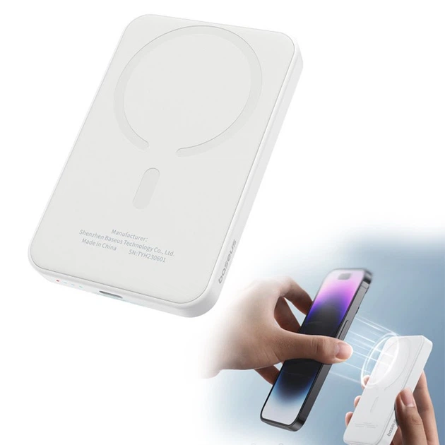 Повербанк Baseus Magnetic 5000 mAh 20W + Бездротова швидка зарядка 15W Білий