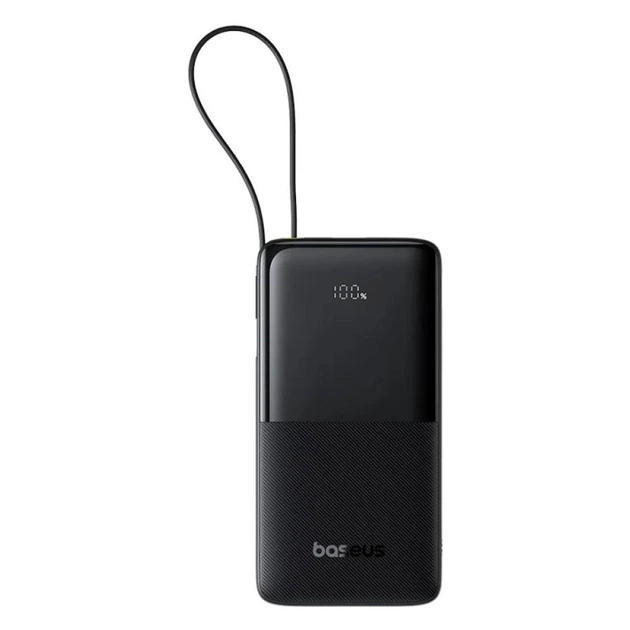 Повербанк Baseus Bipow 2 10000 mAh 20W з вбудованим кабелем USB-C, швидка зарядка PD/QC, Power Bank, чорний