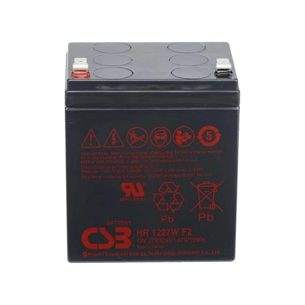 Акумуляторна батарея для джерела безперебійного живлення є невід'ємним елементом, завдяки ній, устаткування продовжує працювати при відключеній електроенергії. Акумуляторні батареї вбудовуються в ДБЖ і практично не вимагають ніякого обслуговування. CSB (HR 1221W) - це свинцево-кислотна, не обслуговуюча батарея з номінальною напругою 12В і місткістю 5 Ач. Також ця батарея