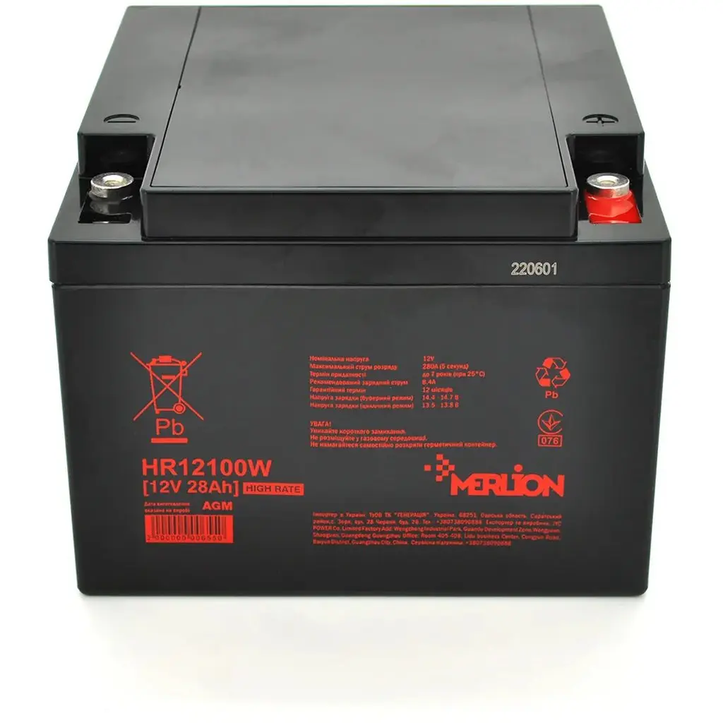 Акумуляторна батарея MERLION HR12100W, 12V 28Ah Black ( 166 х 175 х 125 (125) )