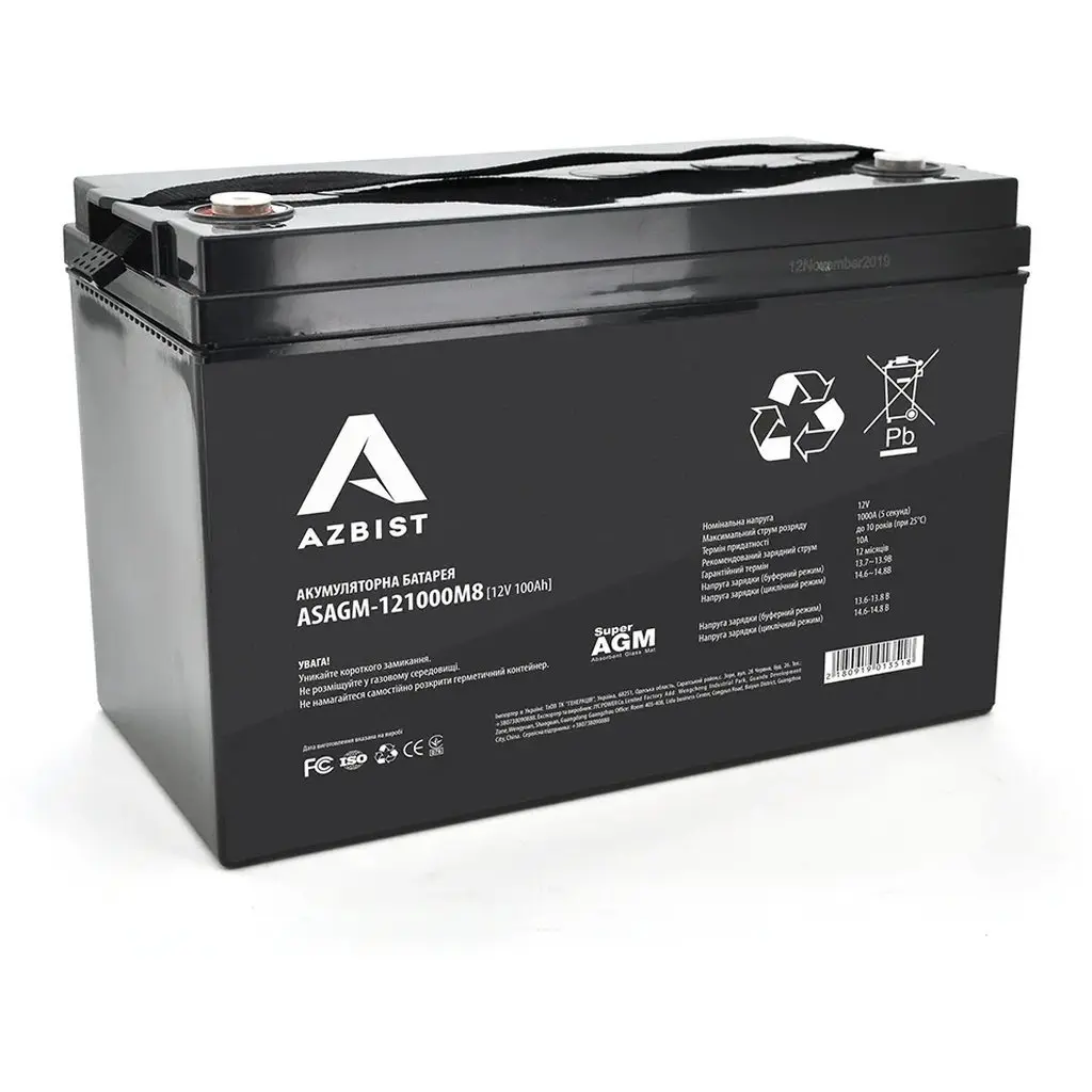 Акумулятор AZBIST Super AGM ASAGM-121000M8, Black Case, 12V 100.0Ah ( 329 x 172 x 215 ) Q1/36
