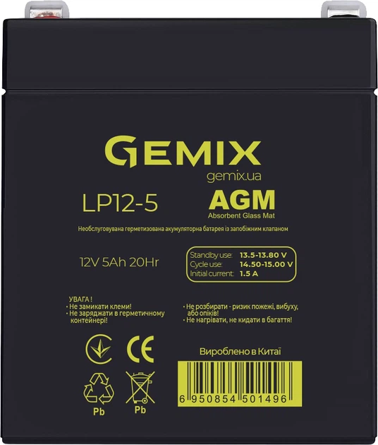 Акумуляторна батарея Gemix 12V 5Ah AGM (LP12-5)