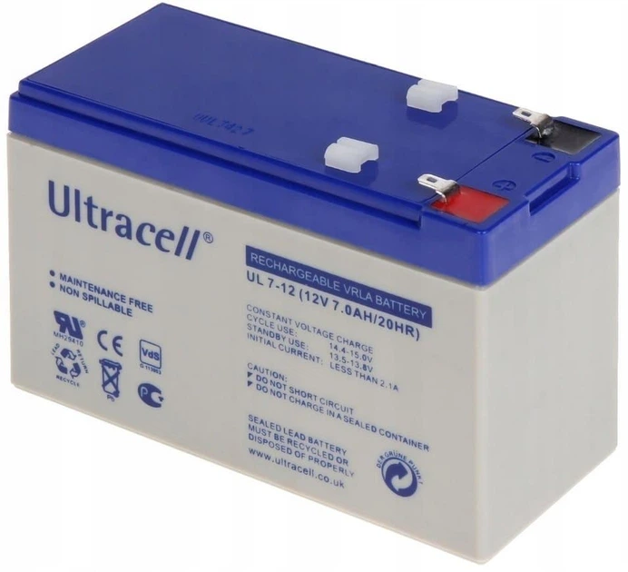 Акумуляторна батарея для ДБЖ Ultracell 12V-7Ah, AGM 12 V / 7 А*ч (UL7-12)
