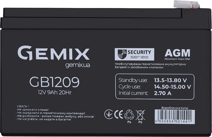 Акумуляторна батарея Gemix 12V 9Ah Security Series AGM (GB1209)