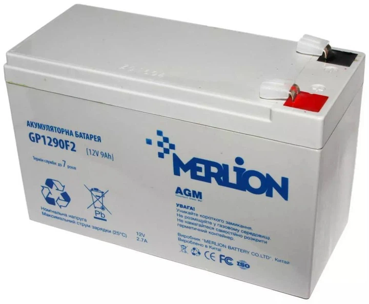Свинцево-кислотна акумуляторна батарея MERLION GP1290F2 AGM 12В 9 А•год