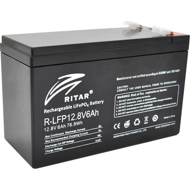 Акумуляторна батарея для ДБЖ Ritar LiFePo4 R-LFP 12.8V 6Ah 12.8 V / 6 А*ч (R-LFP 12.8V 6Ah)