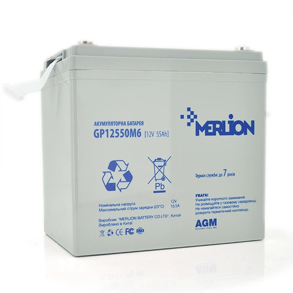 Акумуляторна батарея MERLION AGM GP12550M6 12 V 55 Ah ( 225 x 135 x 210 (215) ) Q1/48