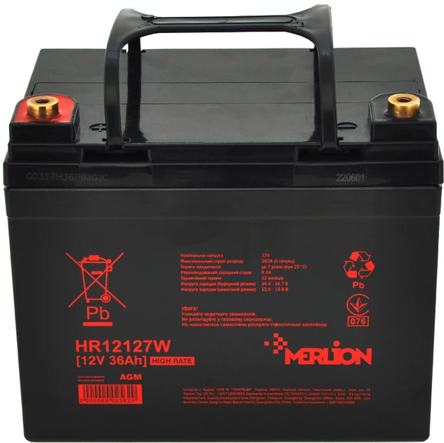 Акумуляторна батарея Merlion HR12127W 12V 36Ah (YT02562)